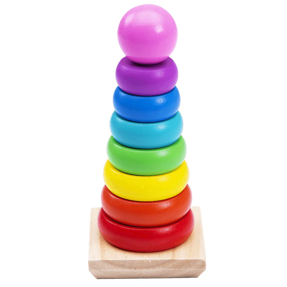 The rounded shapes and smooth edges make it safe and easy for tiny fingers to handle, while the vibrant rainbow colours promote early colour recognition and sensory exploration. Handcrafted from sustainable wood and finished with water-based paints, this rainbow stacker is both educational and visually stunning, the perfect blend of play and purpose for growing minds.